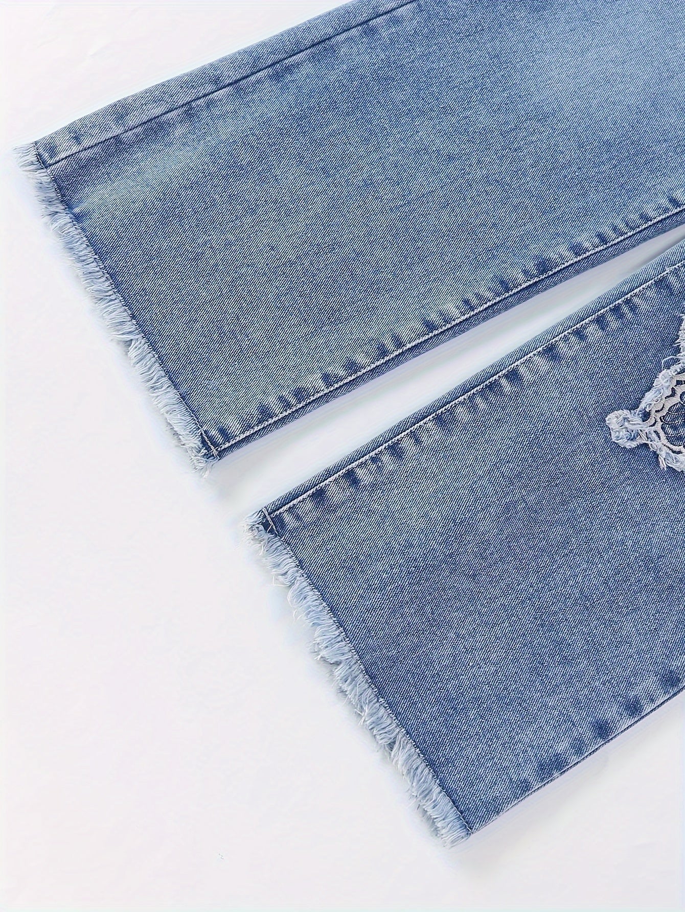 Jean droit style Y2K américain pour fille, décoré de patchs papillon brodés au look rétro streetwear. Conçu en mélange coton-rayonne-polyester avec taille élastique confortable , il offre une coupe droite facile à porter en automne comme en hiver , idéale pour l'école ou les sorties week-end. Aspect faux denim tendance et durable.