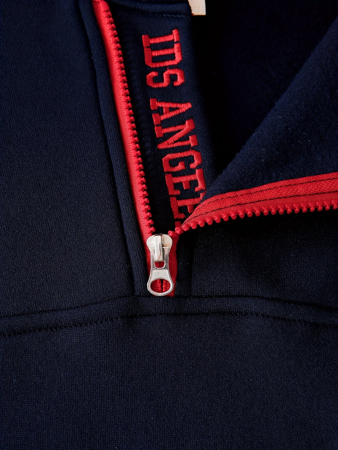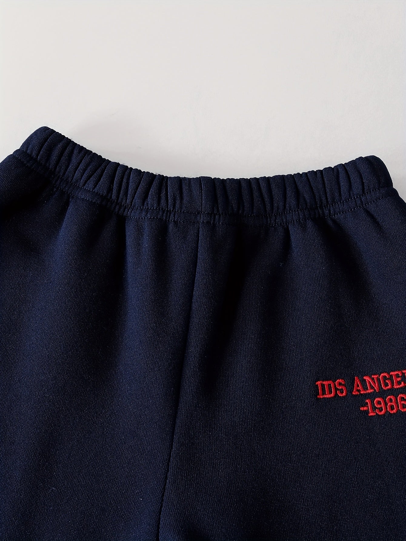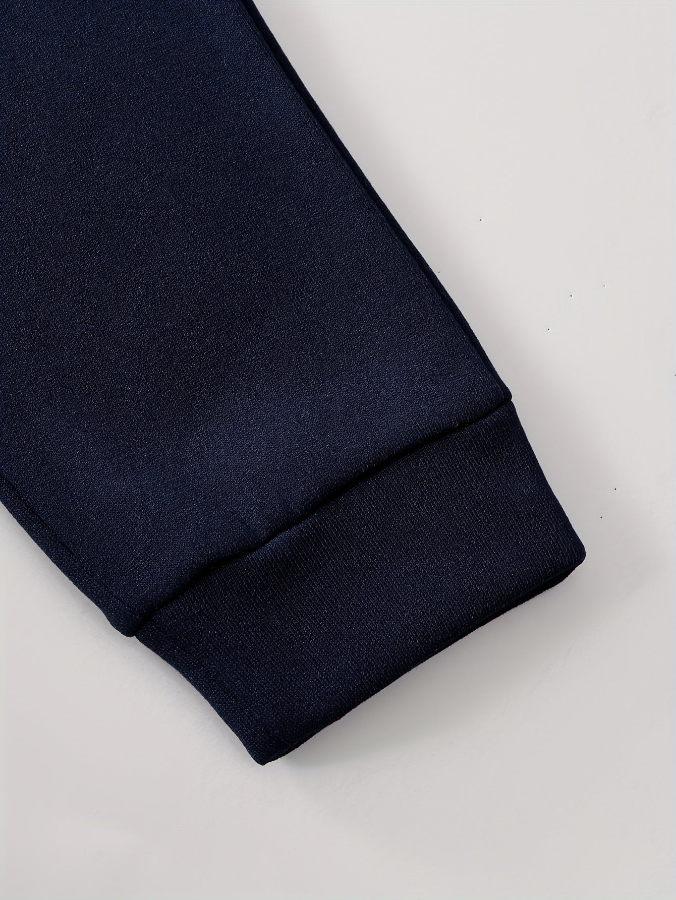 Ensemble 2 pièces pour garçon comprenant un sweat à capuche épais en polaire et un pantalon assorti . Le haut présente une demi-fermeture zippée et un imprimé lettres classiques , offrant un look décontracté tendance et un confort optimal pour les journées fraîches d'automne et d'hiver.