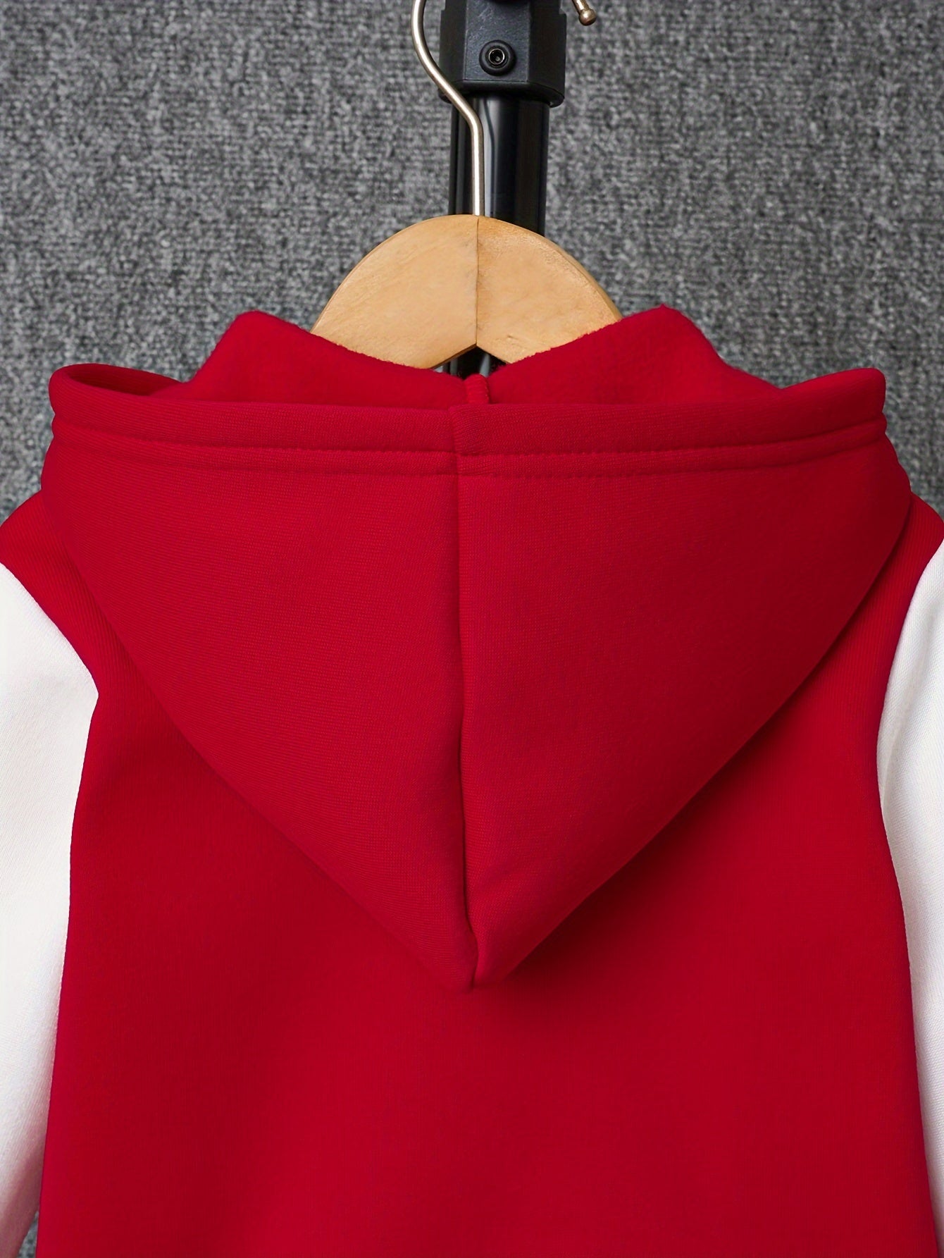 Ensemble 2 pièces pour garçon composé d'une veste à capuche style baseball à manches longues et épaules tombantes et d'un pantalon décontracté assorti . Le design color block et les détails imprimés apportent une touche sportive et tendance , parfaite pour les journées décontractées.
